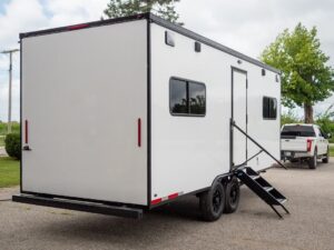 Our uniquely designed 20 foot trailer with a rear desk and dual axle is made for your mobile command needs. We’ll transform your imagination into reality.