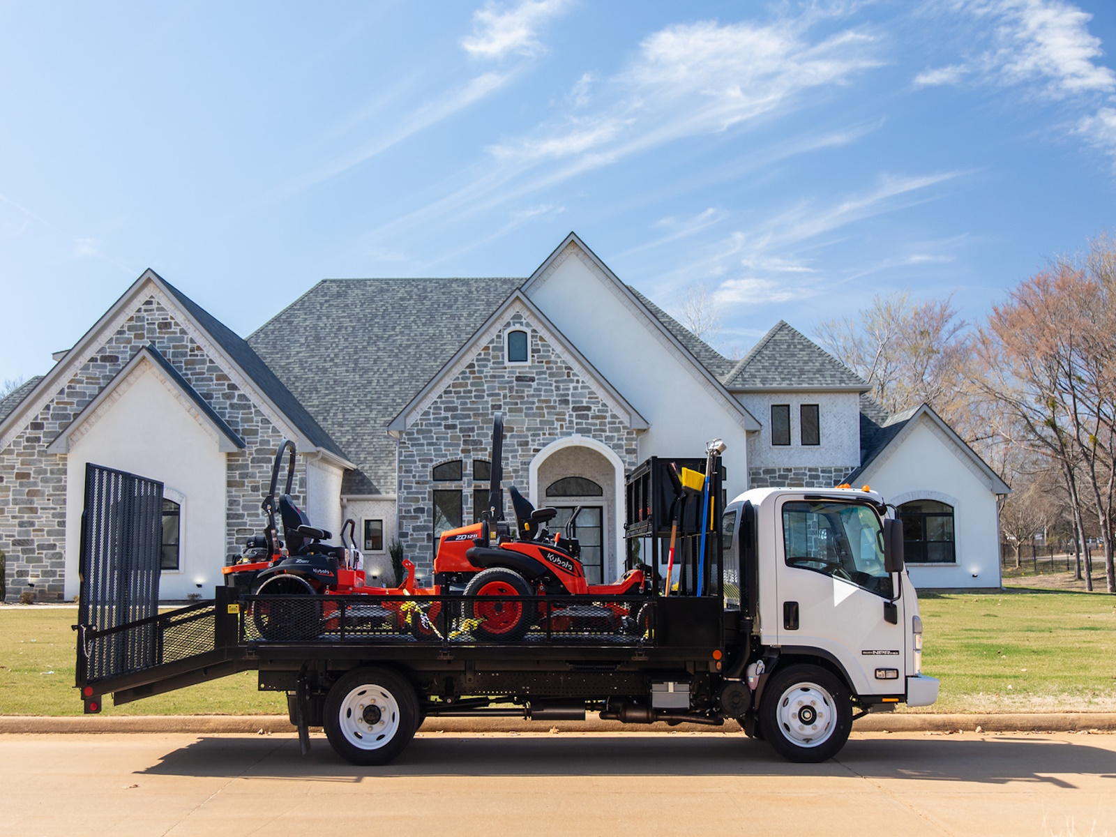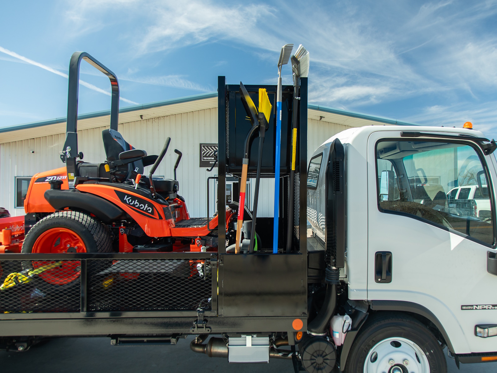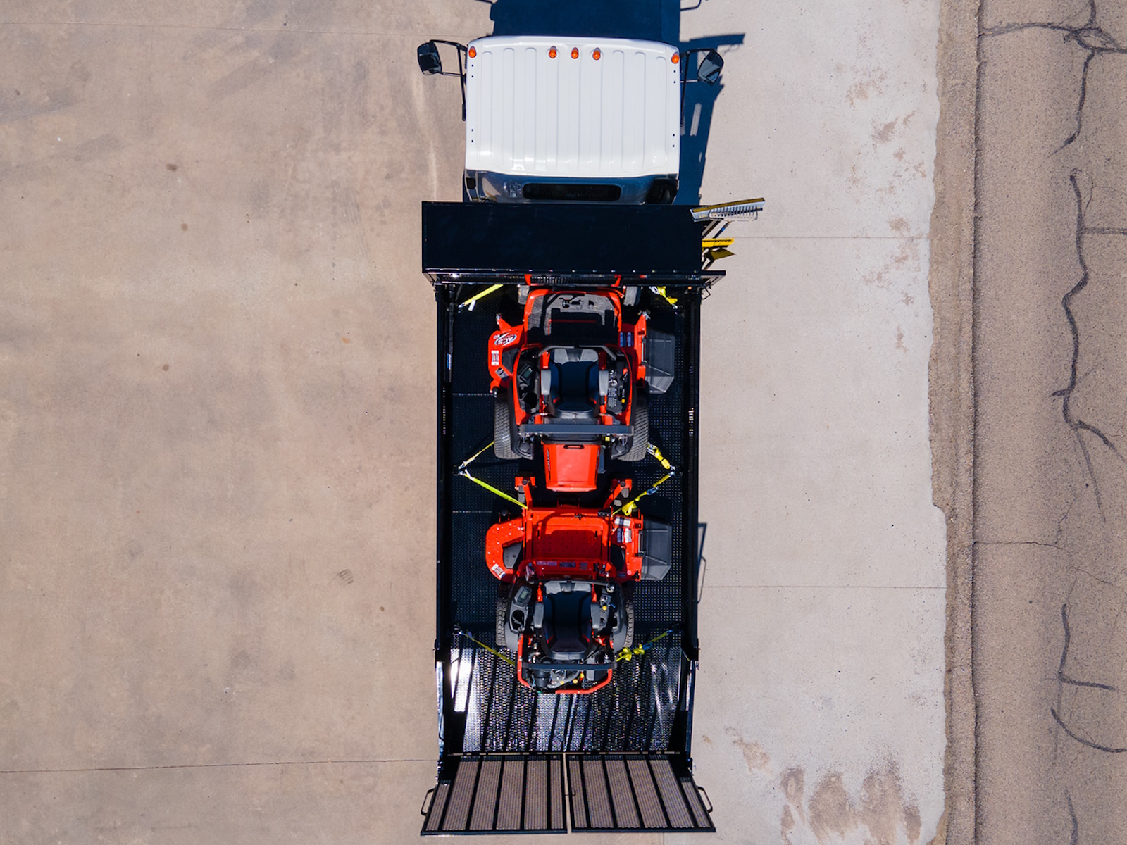 - Load and unload powered equipment efficiently with the Landscape Body’s standard steel dovetail and independent ramps. Mesh steel provides proper airflow and durable strength while our longer ramps allow better clearance for lower riding mowers.
