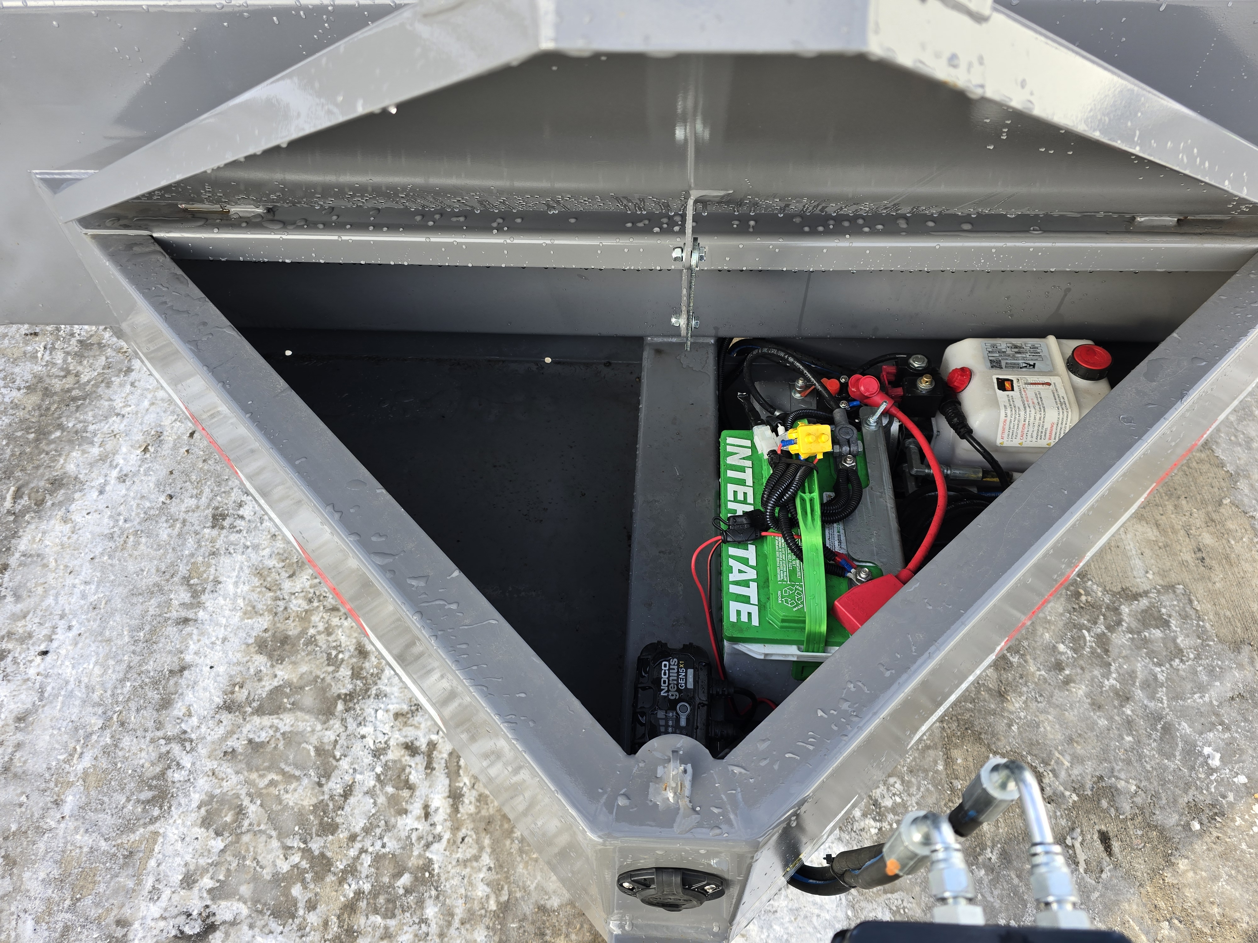 Gray; Pallet Fork Holders, Hydraulic Jack w/ Toolbox, Traction Strips, Stake Pocket for Spare, Knife Edge, On Board Charger