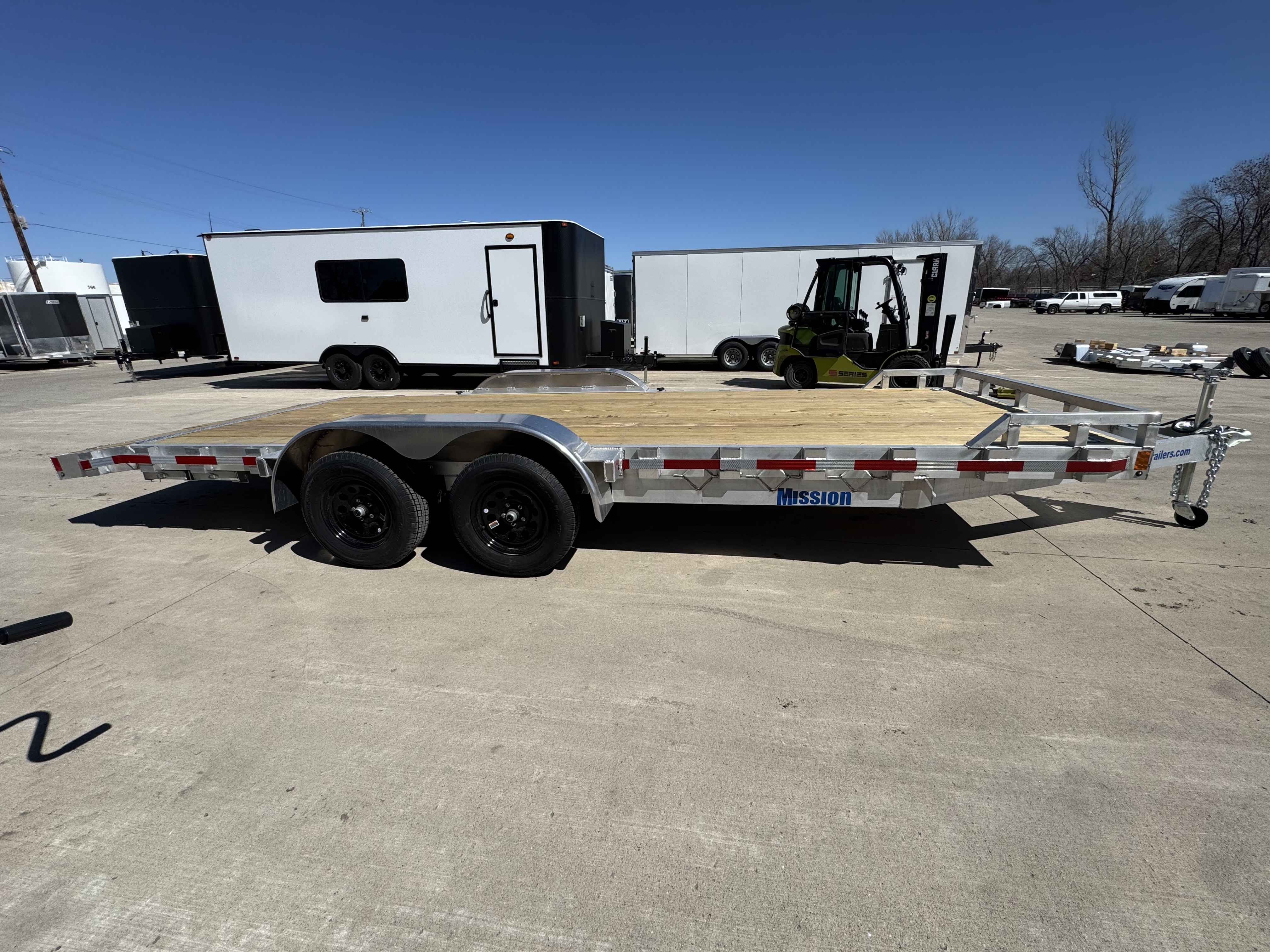 Check out this **New Mission 80''X18' Aluminum Equipment Trailer** from Visto’s Trailer Sales in West Fargo, ND. Stock #035495