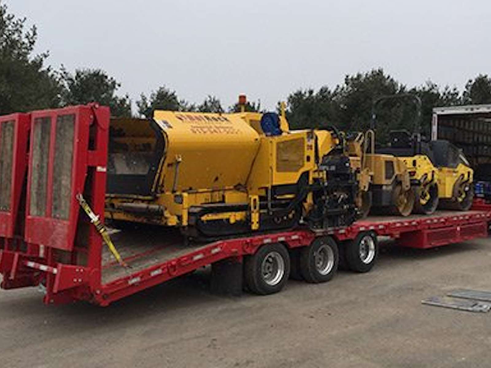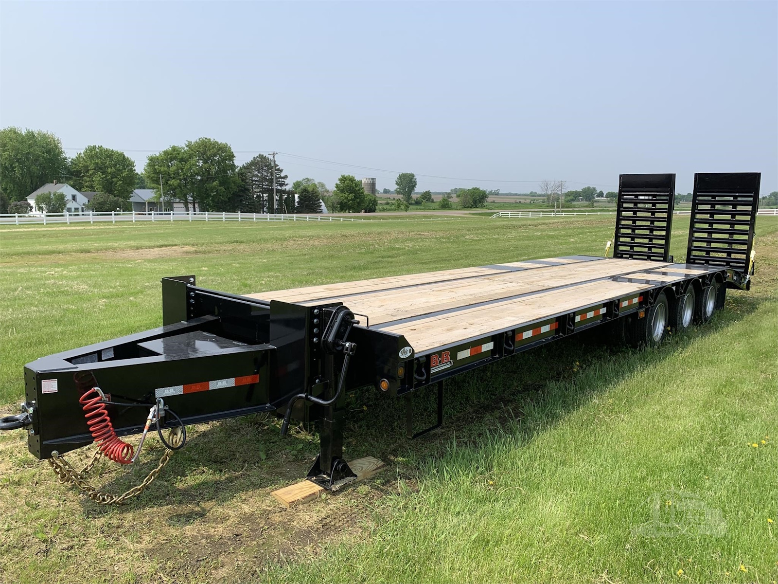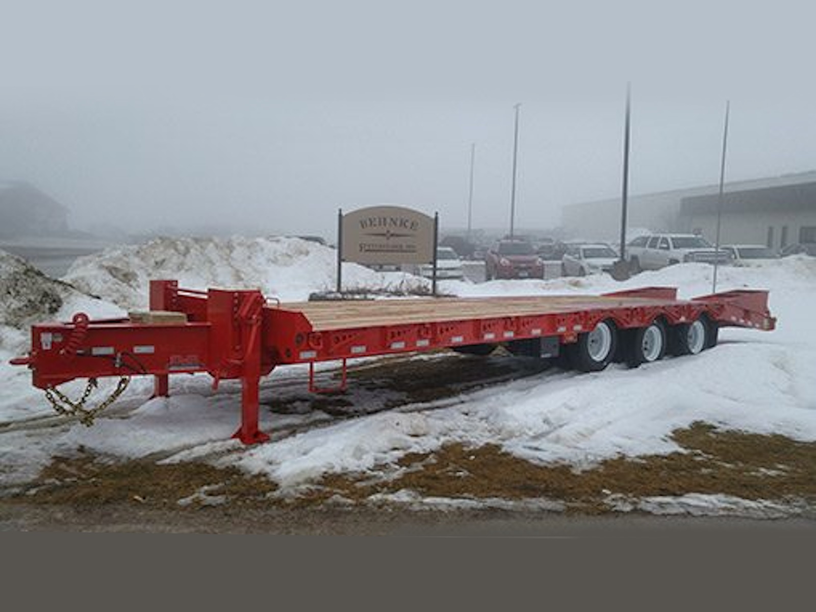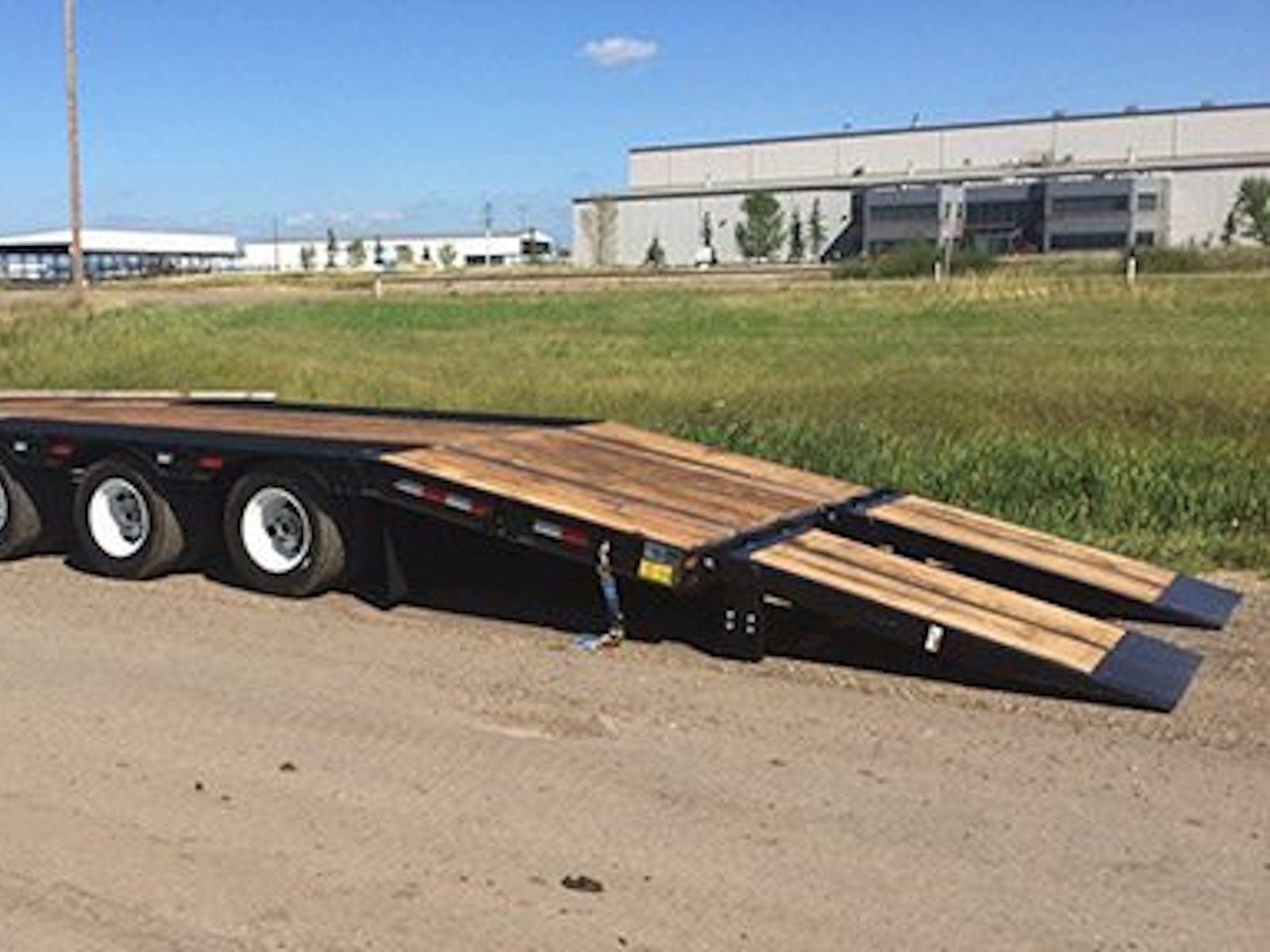 Our 50K tag trailers are pull-type trailers with (3) 22,500 lb. air brake axles and dual 235/75R 17.5 tires, which provide an ultra-low 34" unloaded deck height. These trailers utilize a one piece fabricated I-beam constuction (80 ksi) with 4" jr. I-beam x-members (80 ksi) and oak decking. Bed lengths are available in 20-32' lengths and a 6' self cleaning angle iron beavertail is standard, but many other beavertail and ramp combos are available