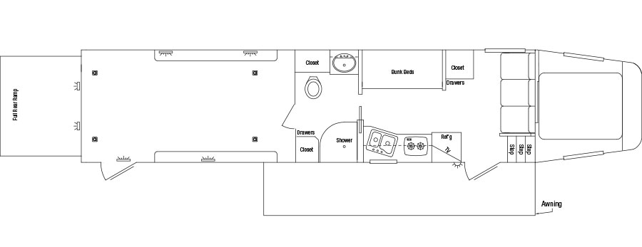 • Floor: 4″ I-Beam Crossmembers on 12″ centers