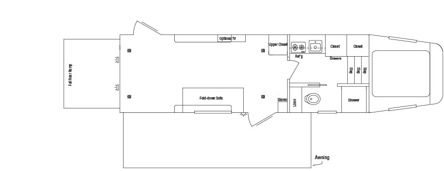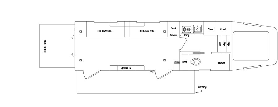 • Roof: One piece 0.040″ aluminum