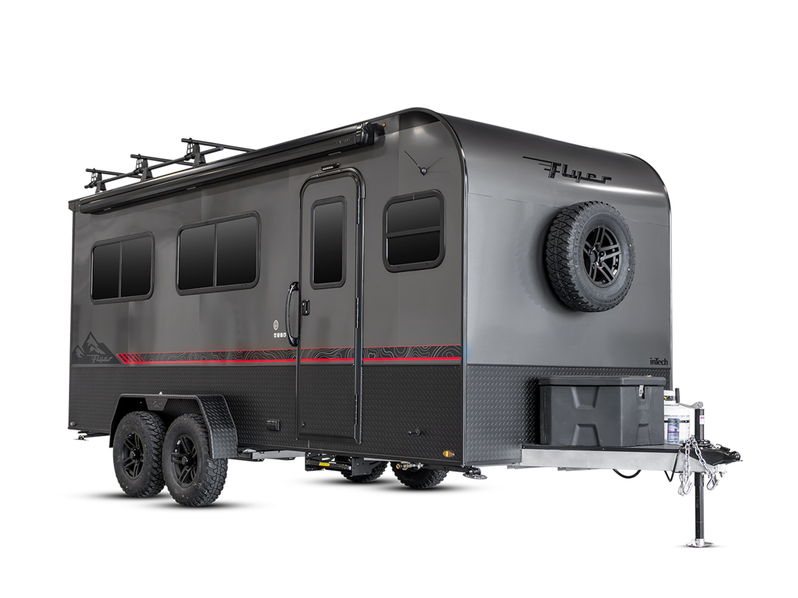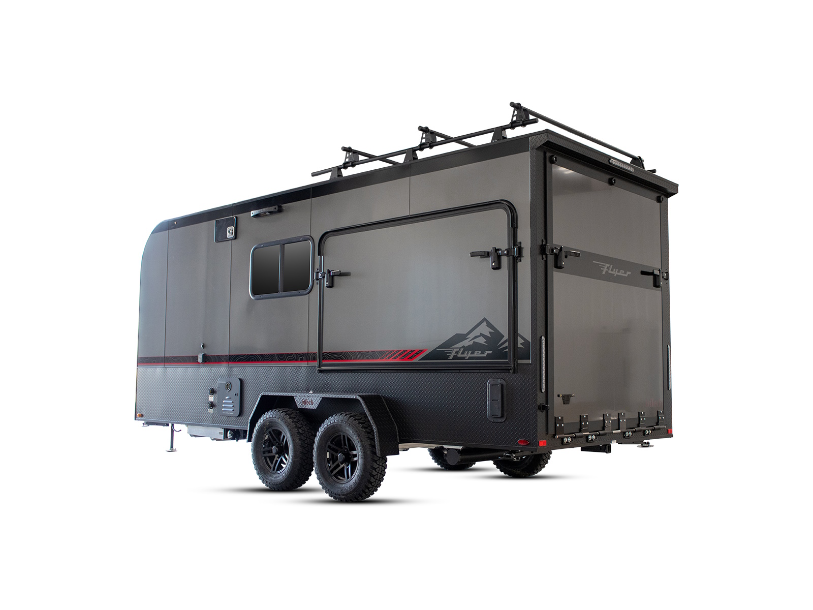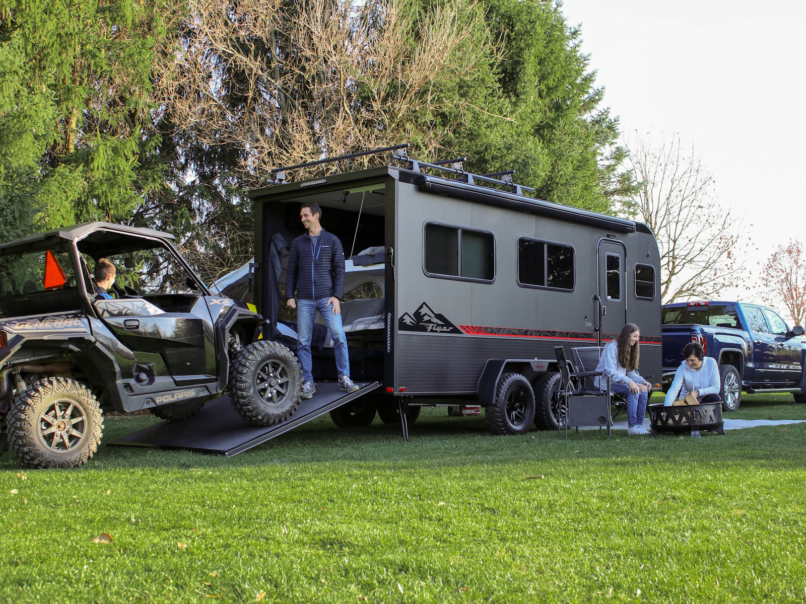 Forge all the corners of the world. Every Flyer is built utilizing an All-Aluminum, Fully Welded Cage Frame, making them strong enough to handle conditions when you find yourself off the paved trail. Forge is the micro-lite toy hauler that can go where traditional RVs simply cannot.