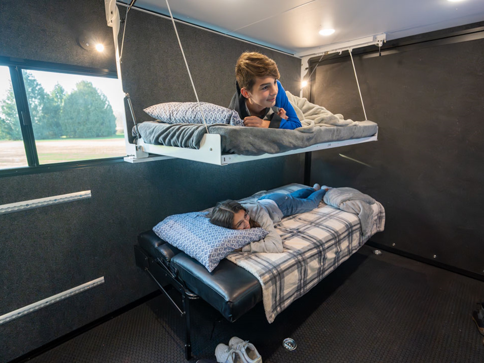 - Increase your sleeping space with the Drop Down Bunk. Rated at 175 lbs.