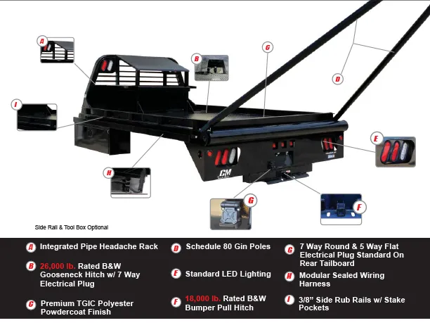 | 3” Steel Roll-Formed 3/16” Channel Crossmembers on 18” Centers | Integrated Side Stake Pockets |