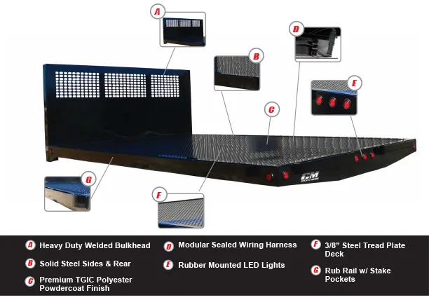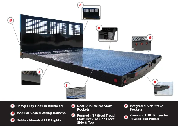 | 1/8” Steel Tread Plate Deck with Removable Tubing Side Rails | Modular Sealed Wiring Harness |