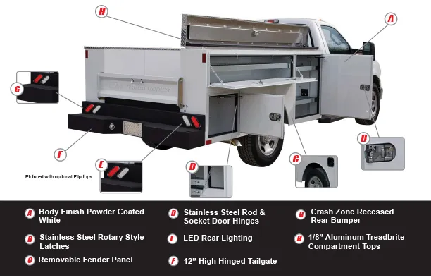 | Recessed Side Tool Boxes w/ T-Handle Compression Latches (2 on Each Side) | Work Lights |